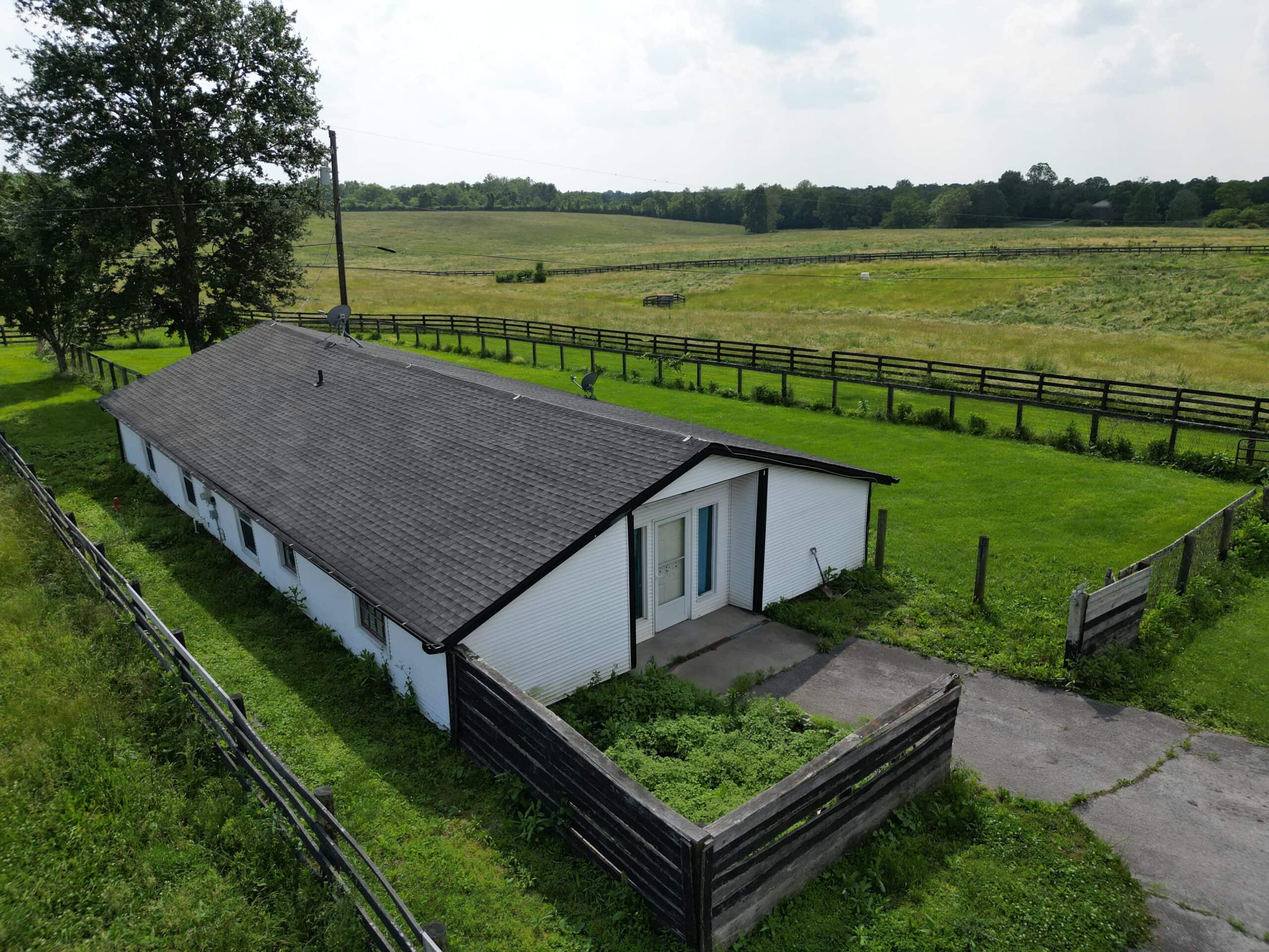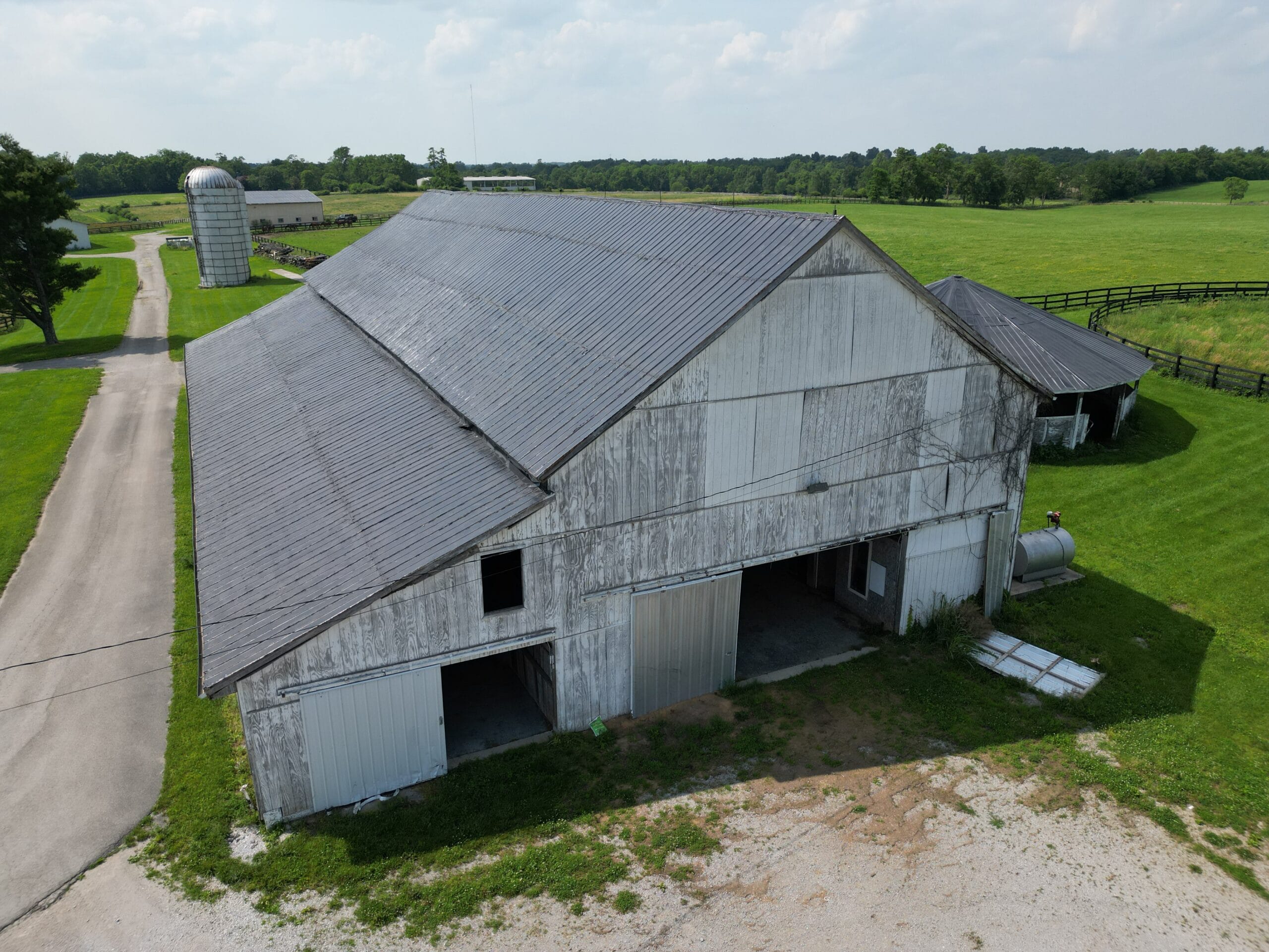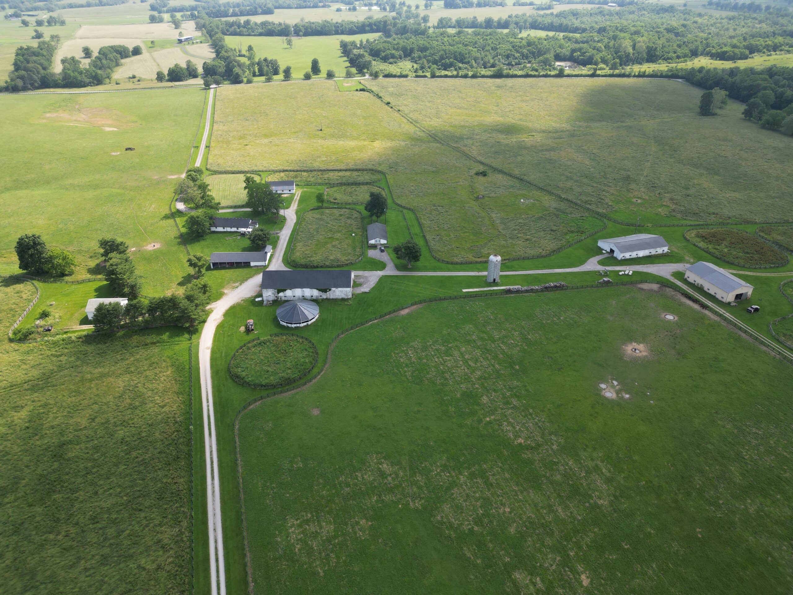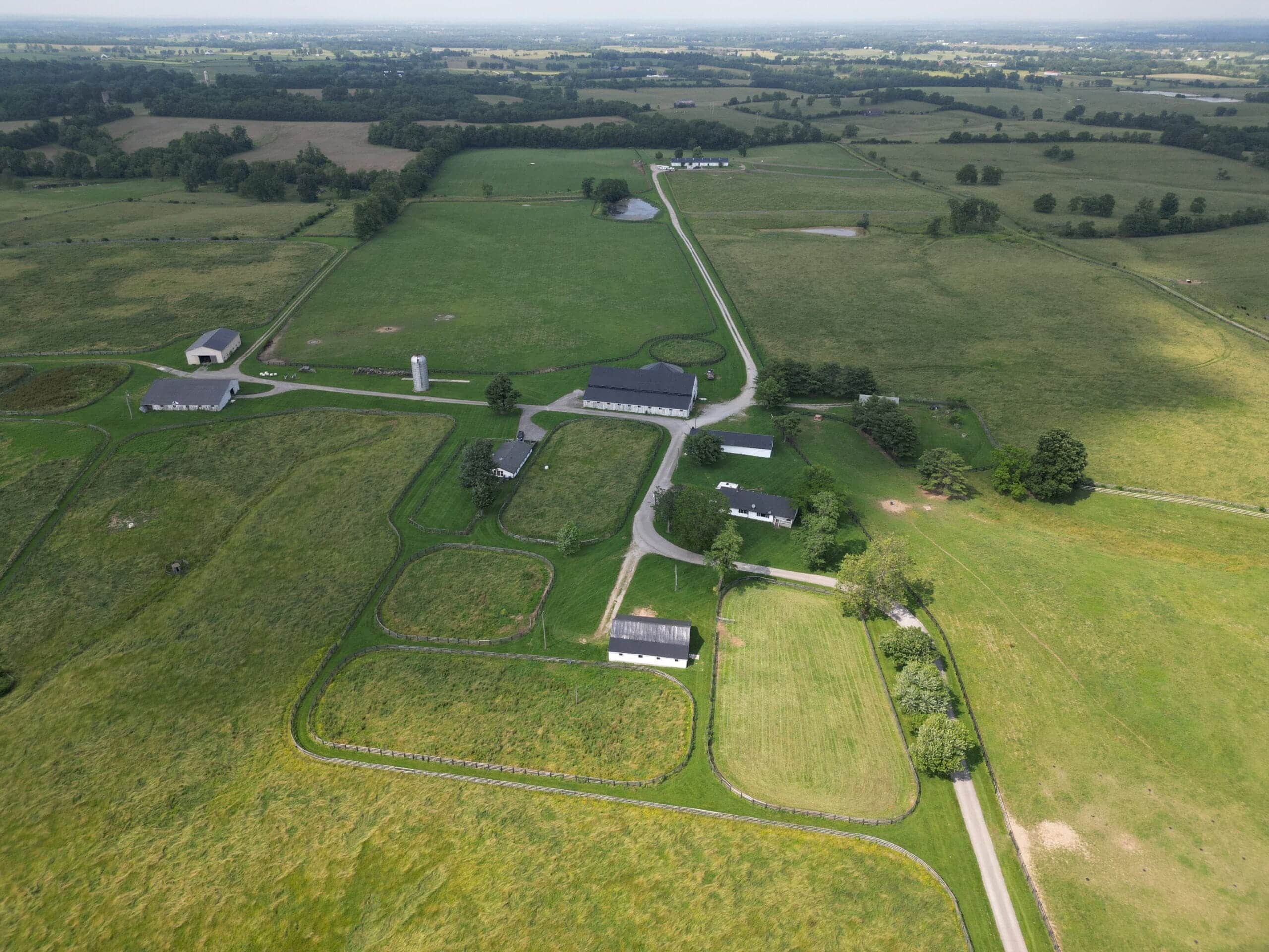 Locust Grove Farm, 193± acre horse farm property located less than 2 miles from Paris Pike and 1.2 miles from Greenwich Pike. Property amenities include 80 stalls over 5 barns with several tack rooms, 2 employee residences, 10 large fields and 7 paddocks with plank fencing and 4 ponds. Straddling the Fayette/Bourbon County line, this land sits on a higher elevation with wonderful scenic views of the surrounding bluegrass. The improvements on this property are in need of renovation and repair, however the infrastructure and land offers many opportunities in this fantastic location – 20 minutes to the Kentucky Horse Park, 11 minutes to Paris, 16 minutes to I-64/75 and New Circle Road. This property is offered in its ”as-is” condition with inspections welcome.