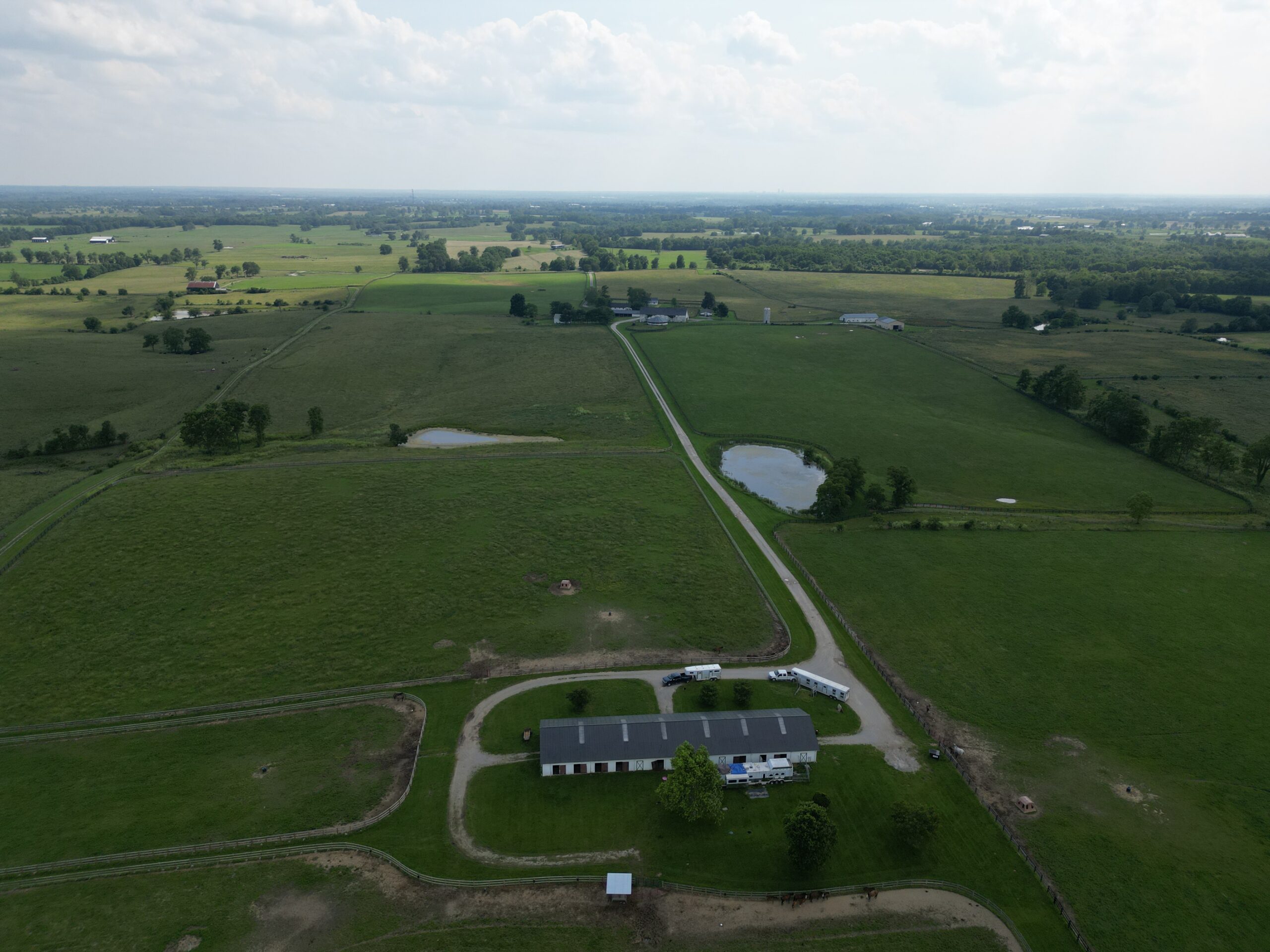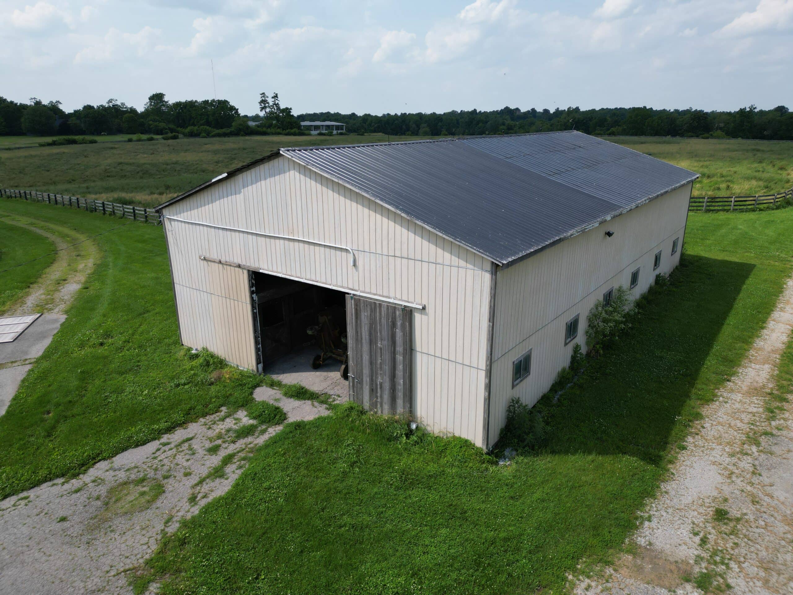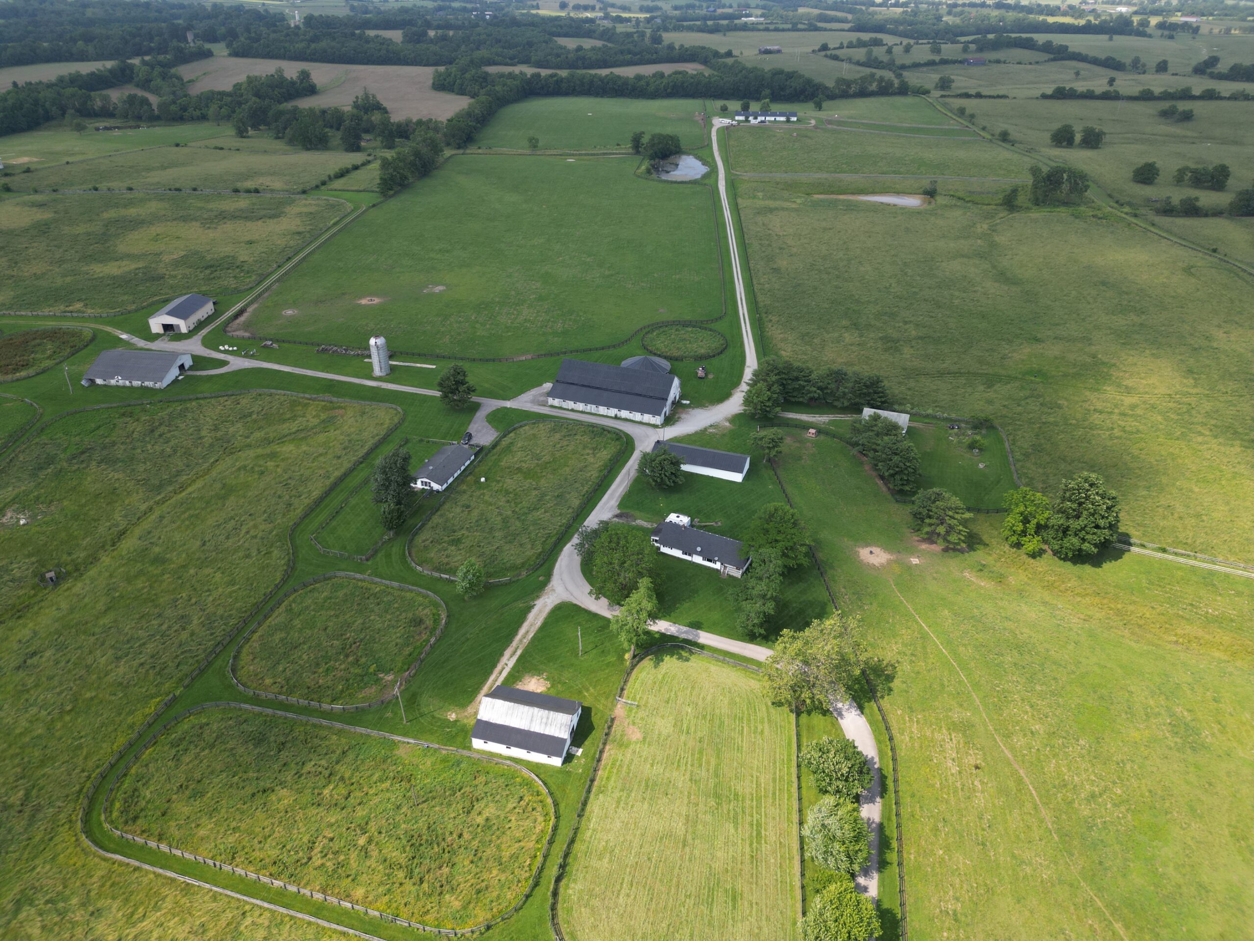 Locust Grove Farm, 193± acre horse farm property located less than 2 miles from Paris Pike and 1.2 miles from Greenwich Pike. Property amenities include 80 stalls over 5 barns with several tack rooms, 2 employee residences, 10 large fields and 7 paddocks with plank fencing and 4 ponds. Straddling the Fayette/Bourbon County line, this land sits on a higher elevation with wonderful scenic views of the surrounding bluegrass. The improvements on this property are in need of renovation and repair, however the infrastructure and land offers many opportunities in this fantastic location – 20 minutes to the Kentucky Horse Park, 11 minutes to Paris, 16 minutes to I-64/75 and New Circle Road. This property is offered in its ”as-is” condition with inspections welcome.