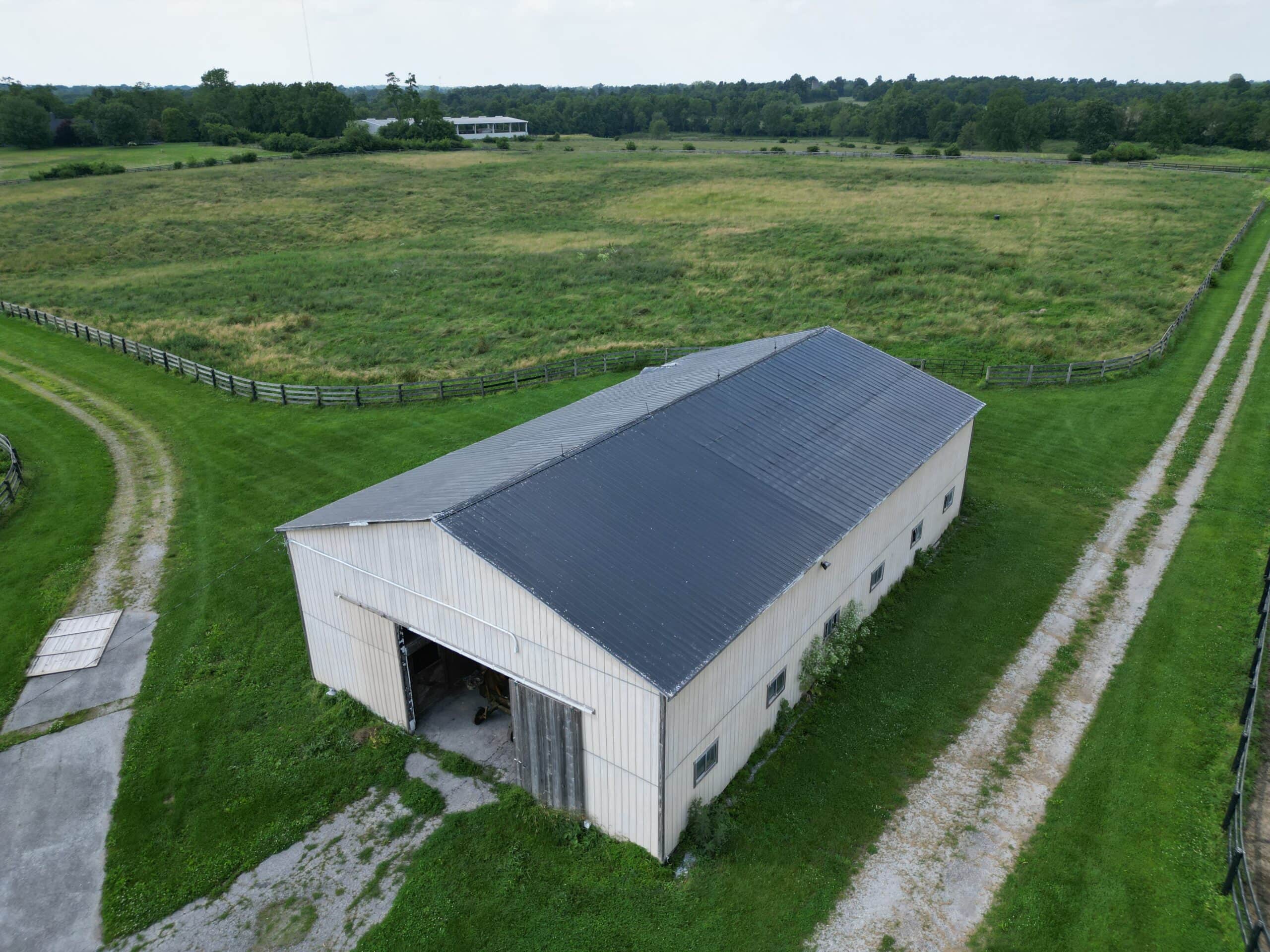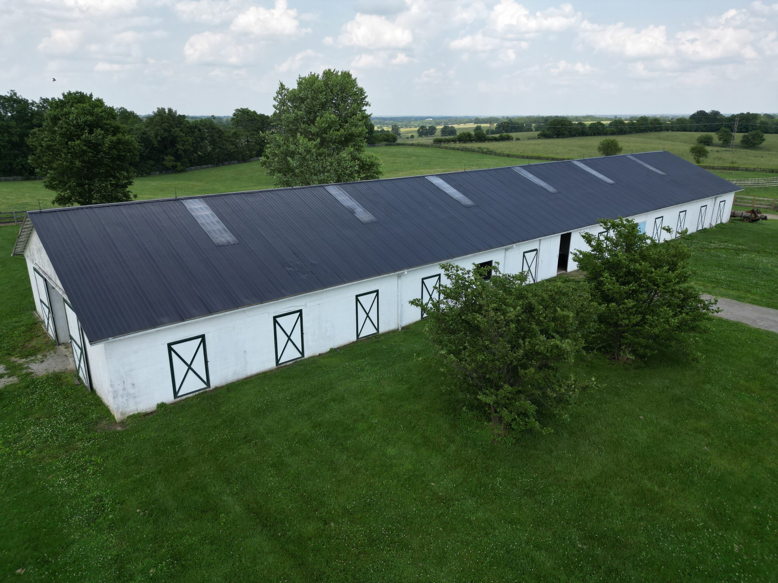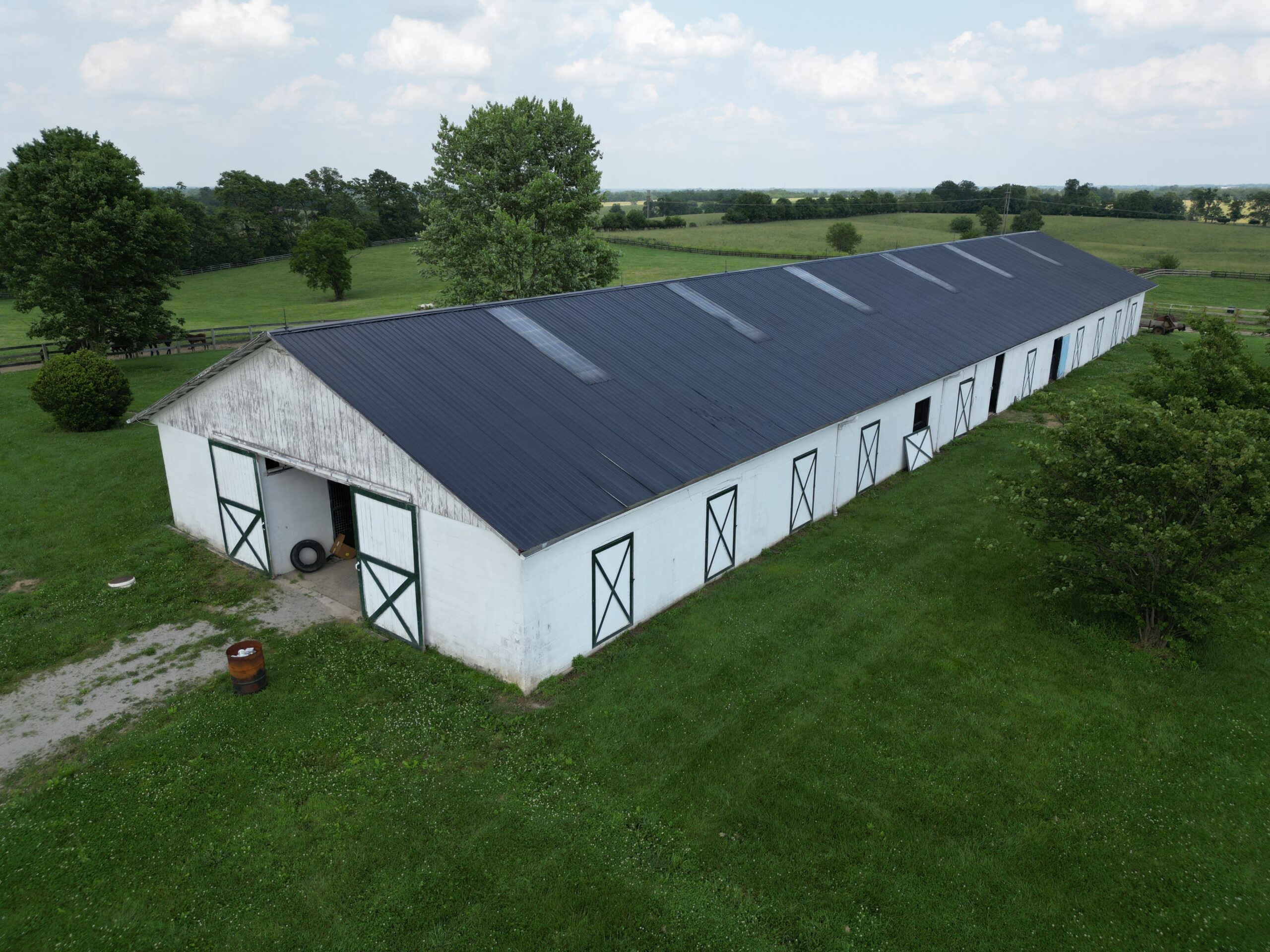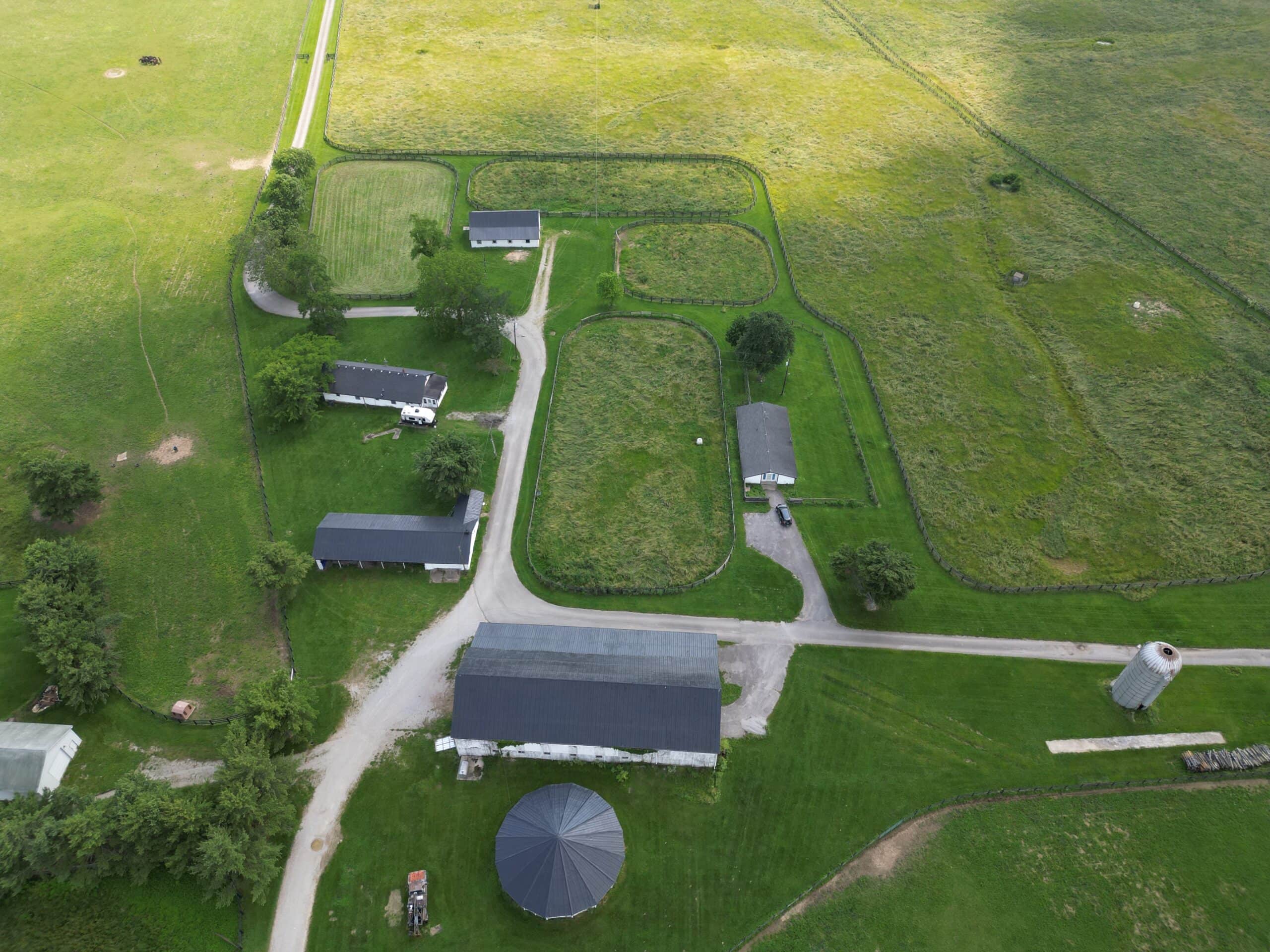 Locust Grove Farm, 193± acre horse farm property located less than 2 miles from Paris Pike and 1.2 miles from Greenwich Pike. Property amenities include 80 stalls over 5 barns with several tack rooms, 2 employee residences, 10 large fields and 7 paddocks with plank fencing and 4 ponds. Straddling the Fayette/Bourbon County line, this land sits on a higher elevation with wonderful scenic views of the surrounding bluegrass. The improvements on this property are in need of renovation and repair, however the infrastructure and land offers many opportunities in this fantastic location – 20 minutes to the Kentucky Horse Park, 11 minutes to Paris, 16 minutes to I-64/75 and New Circle Road. This property is offered in its ”as-is” condition with inspections welcome.