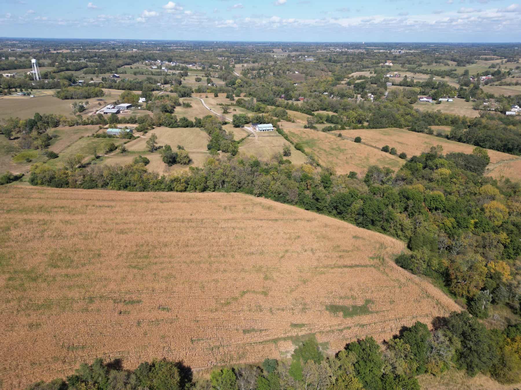 *SOLD* Multiple opportunities await the buyer of this well located 128 acre Woodford County Farm. While the property is currently well fenced for cattle, along with 8 automatic waterers, the future possibilities go far beyond a simple cattle operation. The property is zoned A-4, which is a small community residential zoning which allows for division and development of 1 acre lots, in fact there is a previous engineering plat at Woodford County Planning and Zoning showing 72 individual lots! In addition, should the purchaser so choose, the current owner has applied to the NRCS for consideration of a conservation easement which is assignable, and could generate over $1,000,000 to a new owner under certain conditions. (Call agent for details). The land is elevated above neighboring properties and offers charming views of the surrounding countryside, abundant wildlife and hunting opportunities (Deer, Turkey), and rolling hills with forests and field. Improvements to the farm include a charming weekend hunting cottage, 2 large tobacco barns one of which includes 12 horse stalls. This is a very unique opportunity which offers tremendous potential to a new steward.