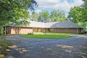 Fantastic location for this 11.68 acre property on Old Frankfort Pike in Woodford County Kentucky! A treelined drive leads to the 5,100+/- sqft brick contemporary